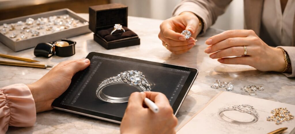 The Bespoke Jewellery Design experience is created for those who seek something entirely their own. A piece shaped with intention, guided by proportion, and refined through a considered design process.