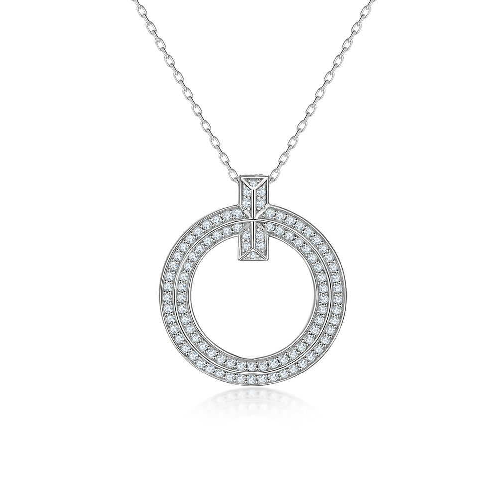 Tillverkat i äkta 925 sterling silver, reflekterar halsbandet ljuset i varje rörelse och påminner om att äkta elegans kommer inifrån. Den geometriska balansen mellan cirkelns mjukhet och den raka linjens styrka skapar en harmoni mellan det feminina och det kraftfulla – en påminnelse om kvinnans förmåga att vara båda.