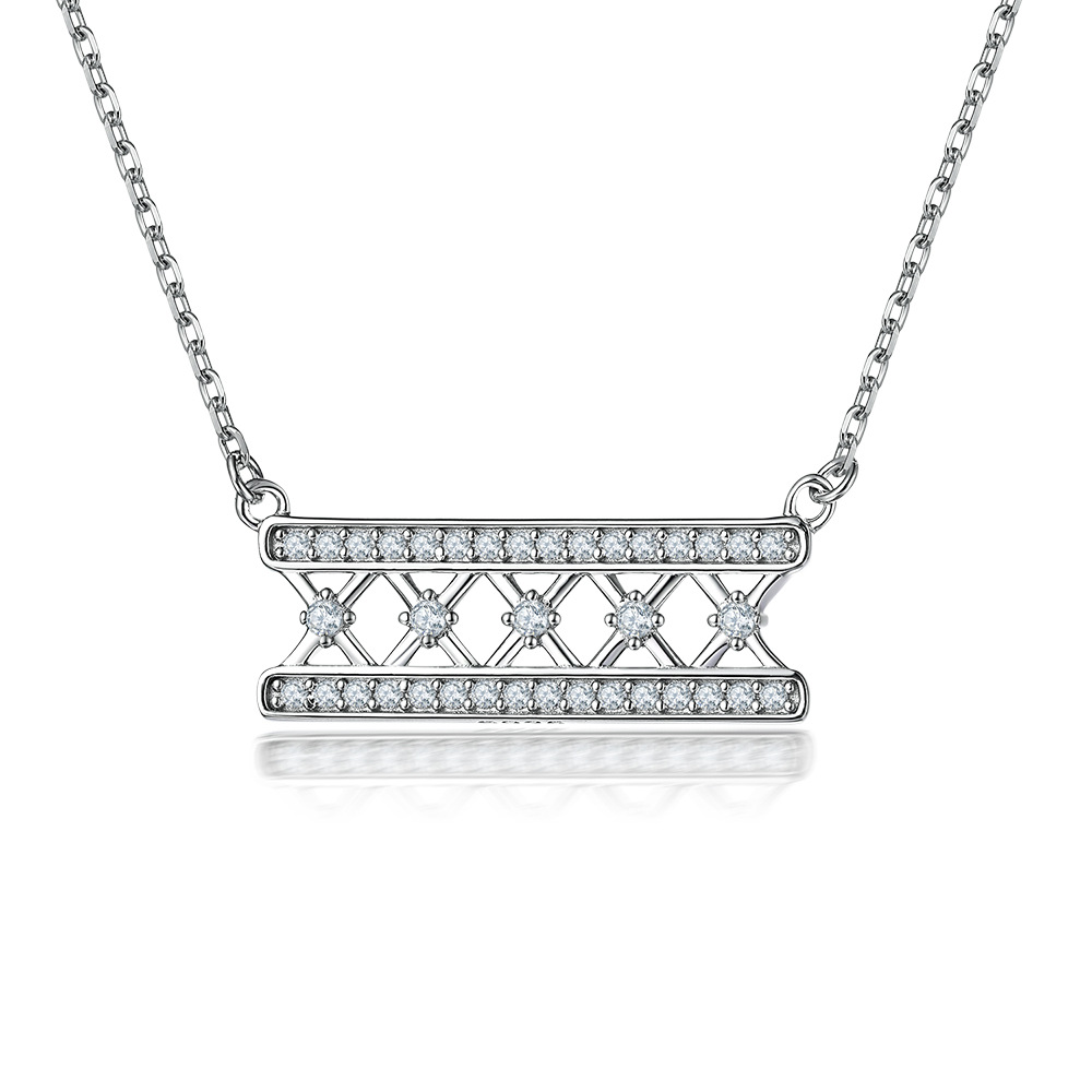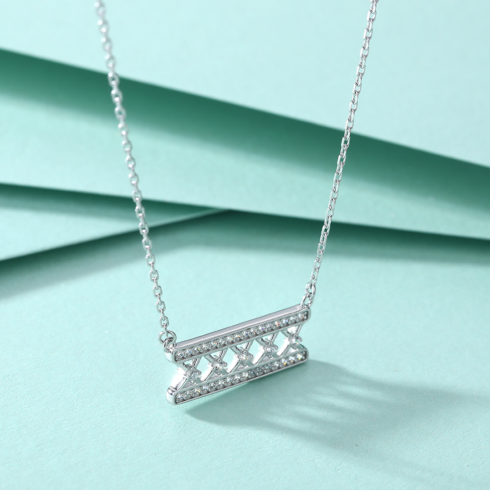 Tillverkat i äkta 925 sterling silver, fångar halsbandet ljuset i varje rörelse – en påminnelse om att även i struktur finns frihet, och i precision finns poesi. Den rektangulära formen står för stabilitet och självförtroende, medan de skimrande stenarna speglar den inre glöd som bor i varje kvinna.